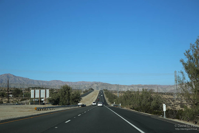 What followed was then a long drive out of Los Angeles into the Mojave desert. This desert landscape takes up a good portion of this part of California but also stretches out into the states of Nevada, Utah, and Arizona. Driving along this part of route 62 we soon realised that we might not have enough fuel to get all the way to Palm Springs after this detour to Joshua Tree National Park, though fortunately we found a fuel stop in Yukka Valley.