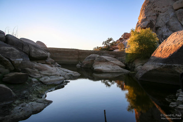 The trail which led to Barker Dam was the only proper trail we took, though we found that the body of water it should be holding back had dried up to almost nothing – a strong reminder of California’s severe drought. By this point it was starting to get dark, but it was too late to find somewhere to get a sunset photograph in the park as the mountains were already hiding the sun from view. All we could do is head out of the park and back to the junction where we could then head on to Palm Springs.