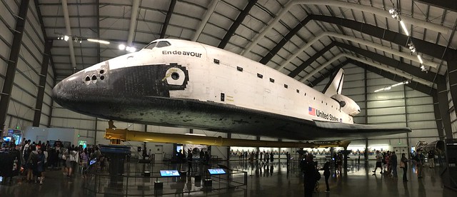 Inside the museum we soon found that we needed to buy a $2 ticket each in order to gain access to the space shuttle Endeavour. This didn’t take long so we got back inside and tried to get to the space shuttle ahead of a school class that had arrived. Unfortunately when we got to the entrance we then found that we needed to exchange the tickets we just bought at a desk elsewhere on the floor to get a yellow admission ticket. A crazy system and one that was far from obvious.