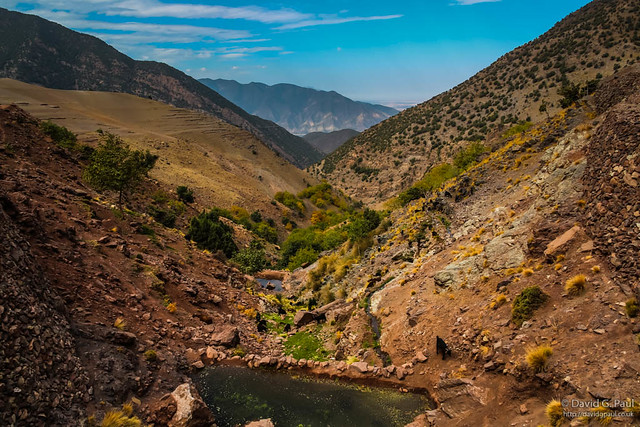 Our descent was trailing the mules the entire way down. Whenever a mule tried to go the wrong way it was hit by a stick until it had diverted back onto the path. It can’t be a nice life being a beast of burden like this. They had carried our luggage and food supplies since Imlil, and in each case had arrived ahead of us.