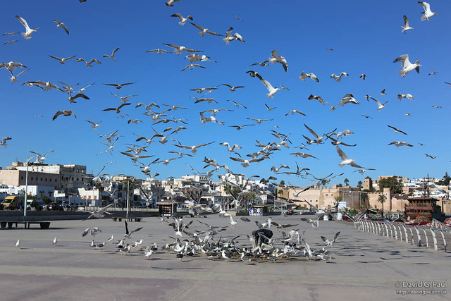 When he dumped the contents of what he was wheeling onto the floor it looked like it might have been food, and soon he had hundreds of gulls fighting each other over it. The cacophony of noise was loud, and the sky filled with wings. It was like watching Alfred Hitchcock’s “The Birds”.
