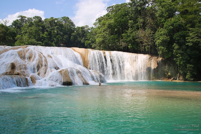 We arrived at Agua Azul at 10:10 and was given 1hr30 to look around, and if we wanted to, swim. The water here is a clean blue colour and flows over many different waterfalls at different levels creating a large number of different sized pools that you can swim in. The falls range from 3 metres to 30 metres and there are over 500 there in total. Around some of them they also have a coast guard keeping an eye over the people swimming. As far as I could tell whilst I was in the water before leaving there didn’t seem to be any fish. I assume it’s the flow of the water that keeps the water clean, and mostly free of algae.