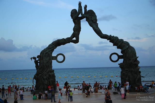 In the evening we wandered around to see if it was an option to photograph the sunset, but it wasn’t a very good one so decided not to bother. Around this area there were performers in Mayan costumes dancing and playing instruments underneath an arch. Eventually we went looking for somewhere to eat as the day came to a close.