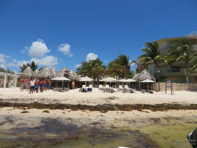 At 10:30, just ten minutes late, we were picked up and driven to Puerto Morelos for the “Original Snorkelling Adventure” tour. When we arrived there we were told we would be briefed once everyone had arrived, and for now to pay the US$4 conservation tax and to check valuables into a locker (which was in fact a bag that they dropped into a large locked chest). After this it didn’t really seem clear what we were supposed to be doing in the meantime but we were soon briefed in full on what the day would entail. They said there was no rush for anything and things would just happen.